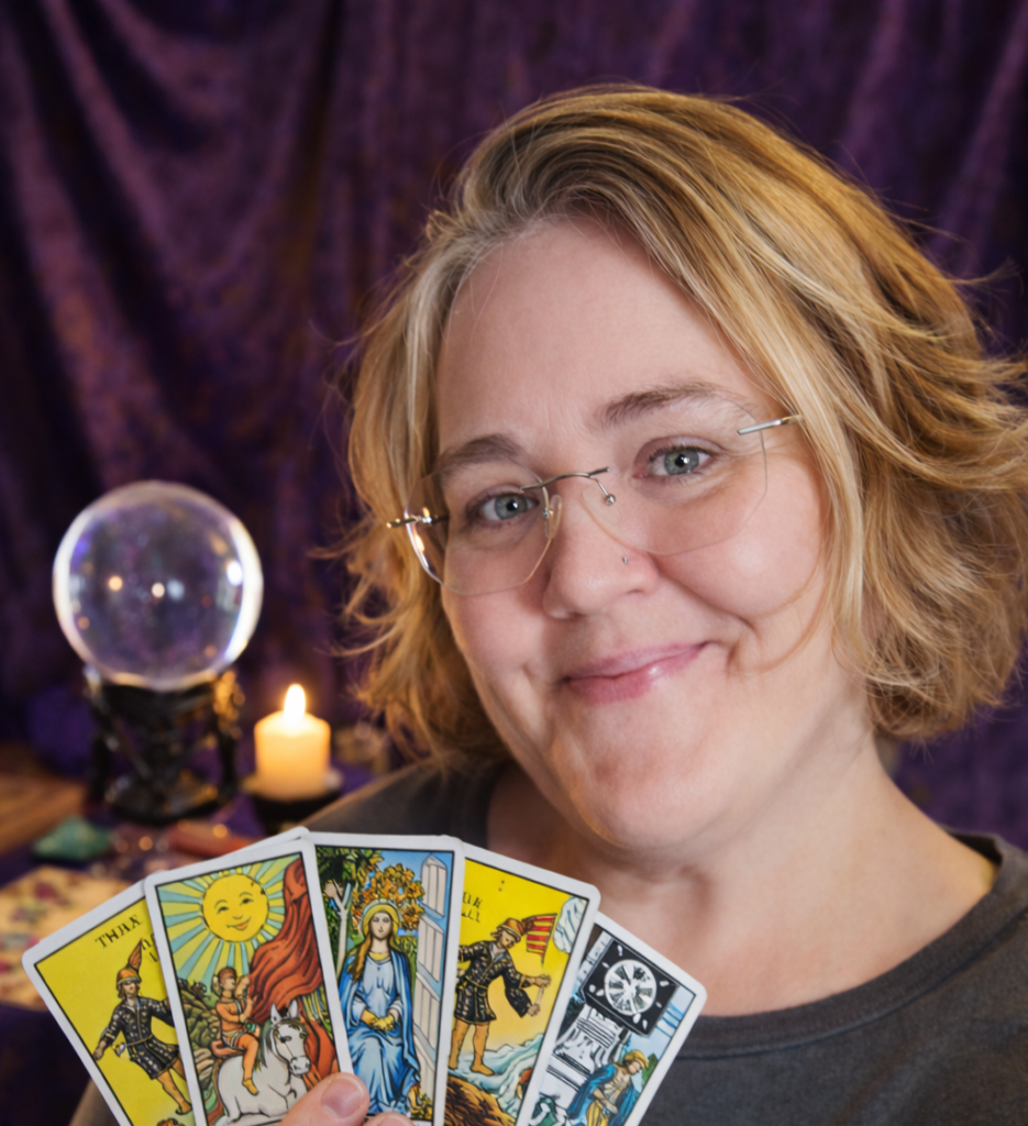 Hi, I’m Jen — a tarot student, reader, and teacher with over 30 years of experience. I’m also a Reiki Master, certified life coach, practicing witch, and lifelong artist.